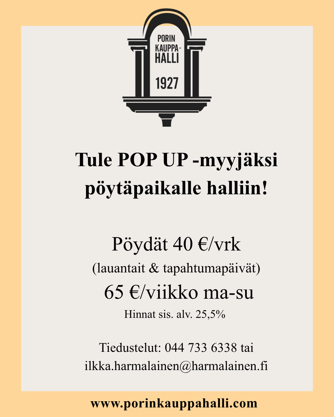 Popup-pöytien vuokraus on mahdollista. Yhteydenotot ilkka.harmalainen@harmalainen.fi .